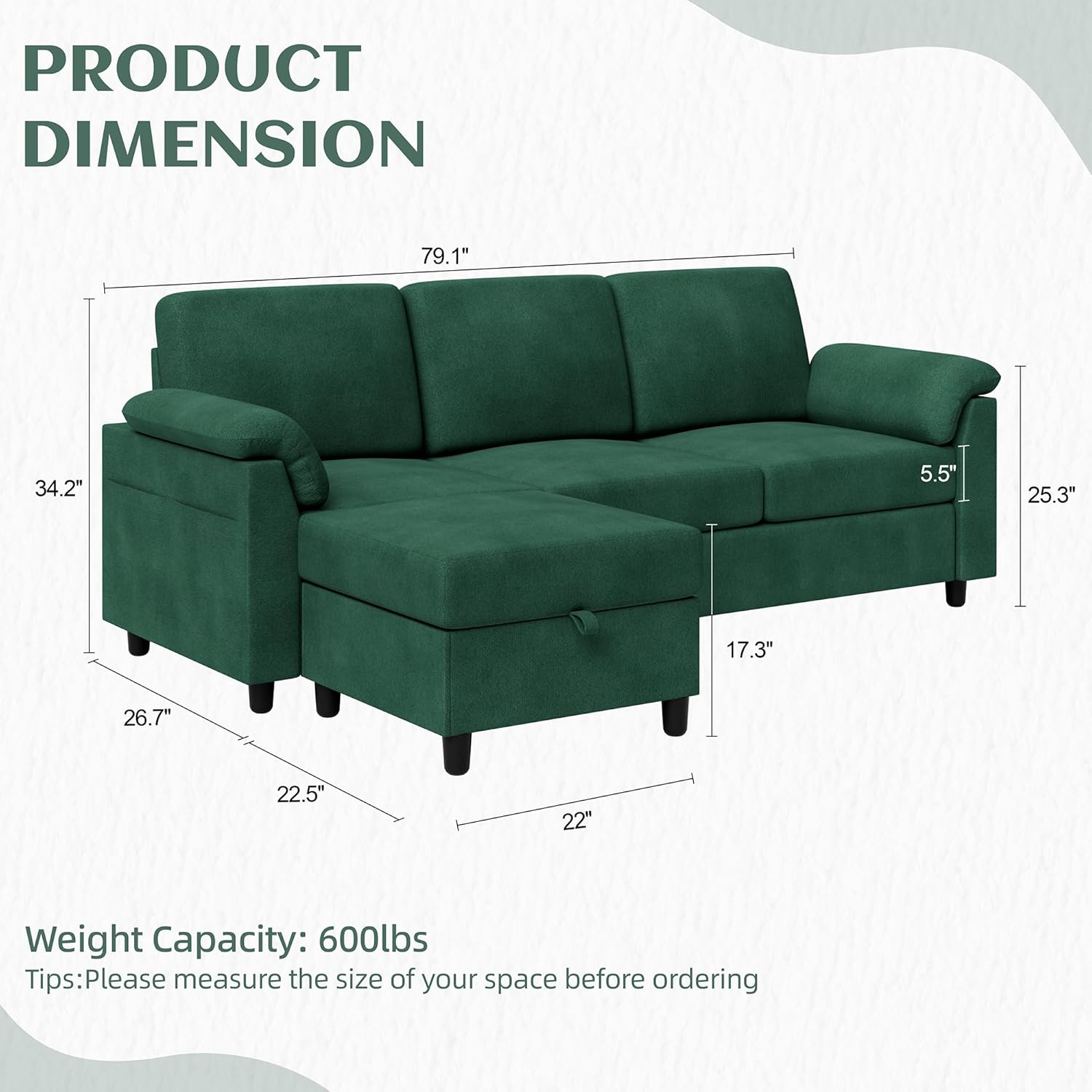 - Rugged construction: The reinforced backrest and hardwood frame ensure that the sofa is firmly supported and remains elegant even under the weight of up to 600 pounds, providing unparalleled comfort and ideal for your home life.