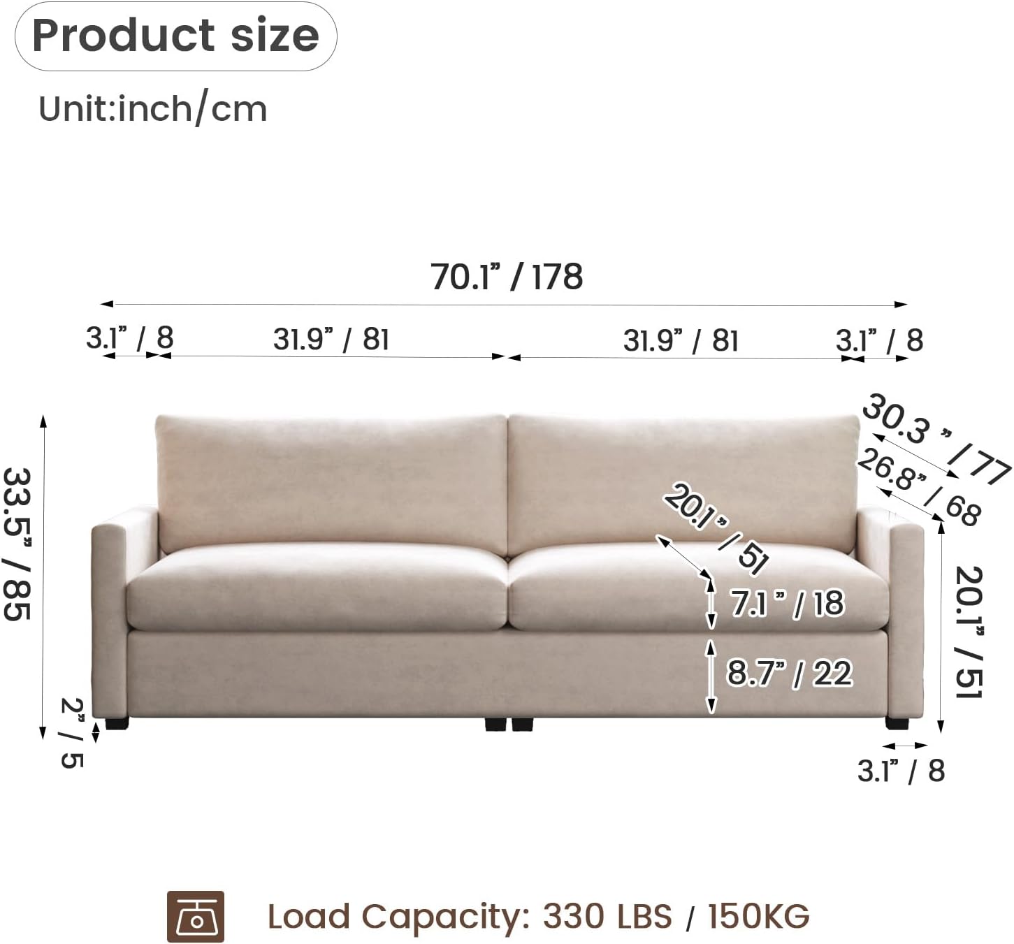 - Modern Minimalist Design:Featuring a clean silhouette and warm beige upholstery, this loveseat brings a refined modern style to both offices and homes. Its compact size saves space while still offering a deep, comfortable seating experience suitable for work or relaxation.