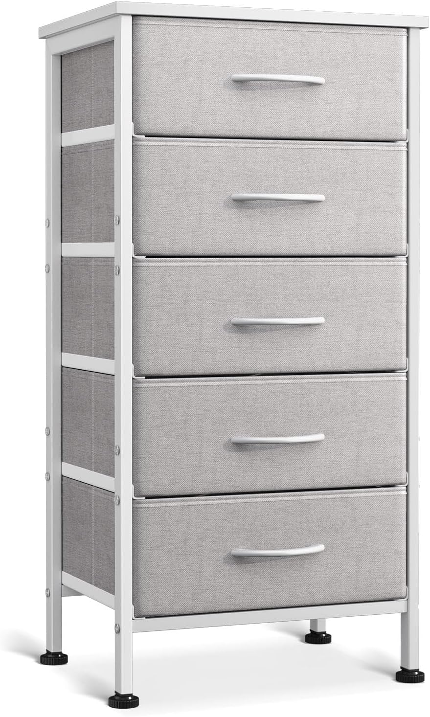 Small Dresser for Bedroom with 5 Storage Drawers, 31″ Tall Dresser Chest of Drawers End Table for Living Room, Fabric Dresser with Sturdy Steel Frame, White and Light Grey